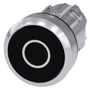 PULSADOR, 22MM, REDONDO, METAL, BRILLANTE, NEGRO, INSCRIPCION: O, BOTON, RASANTE MOMENTANEO. SIEMENS |