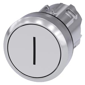 PULSADOR, 22MM, REDONDO, METAL, BRILLANTE, BLANCO, INSCRIPCION: I, BOTON, RASANTE MOMENTANEO. SIEMENS |