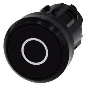 PULSADOR, 22MM, REDONDO, PLASTICO, NEGRO, INSCRIPCION: O, BOTON, RASANTE, MOMENTANEO. SIEMENS |