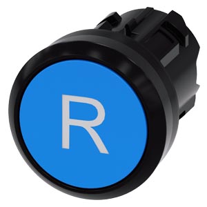 DRUCKTASTER, 22MM, RUND, KUNSTSTOFF, AZUL, BESCHRIFTUNG: R, DRUCKKNOPF, FLACH, TASTEND. SIEMENS |
